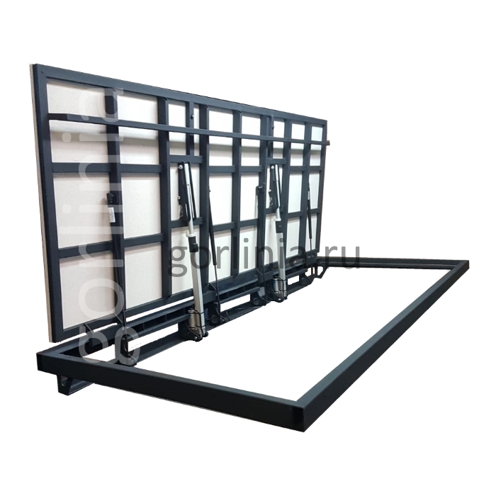 P.S. До установки и облицовки допускаются перекосы рамы и некорректная работа механизма (подвисание привода в полузакрытом состоянии из-за газпатронов), так как каркас не выставлен, не закреплен и не нагружен, а усилие подъемников рассчитано на дополнительный вес клея с финишным покрытием на полотне двери.