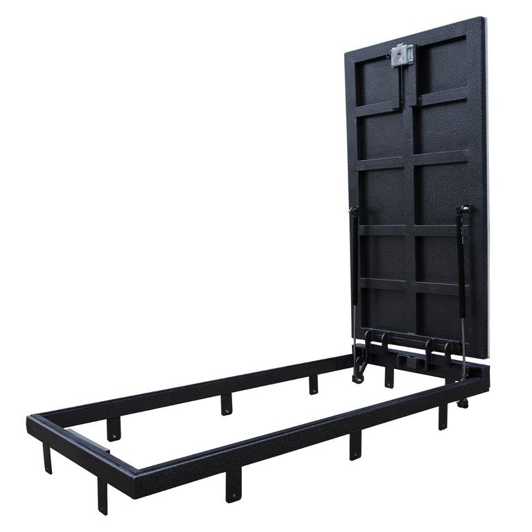 Рама без наличников выставляется в существующем отверстии 90*60 см с допусками, крепится в перекрытии через вертикальные пластины даже когда Ваш ремонт закончен и пол выложен керамогранитом или настелена ламинированная доска.